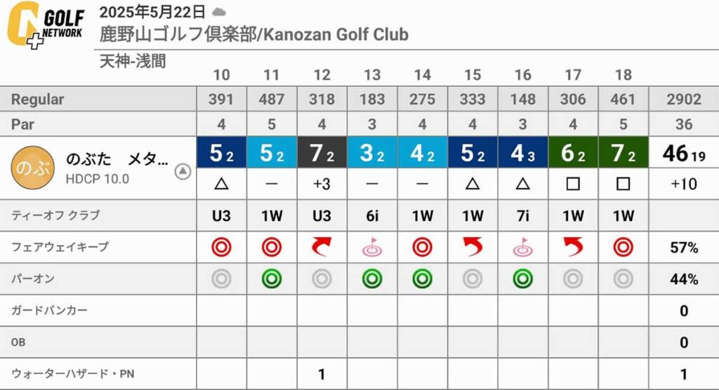 後半は、ショットが前半と比べると乱れてしまって大きなミスもあり、ダブルボギー以上が3つとしてしまいました。ちょっと途中からメンタル的も良くなくなってしまった感じです。