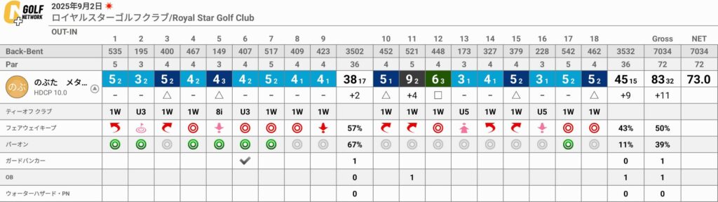 2025年9月2日ロイヤルスターゴルフクラブ83327/18