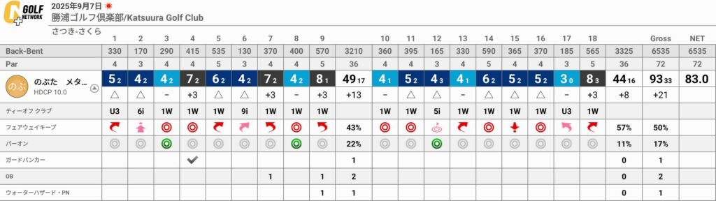 2025年9月7日勝浦ゴルフ倶楽部93333/18