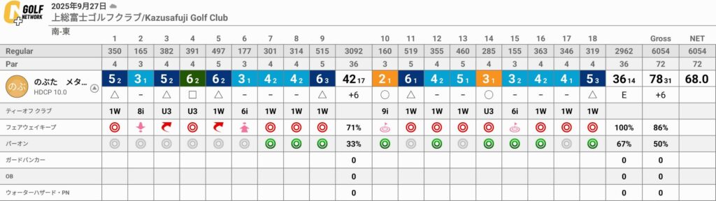 2025年9月27日上総富士ゴルフクラブ78319/18