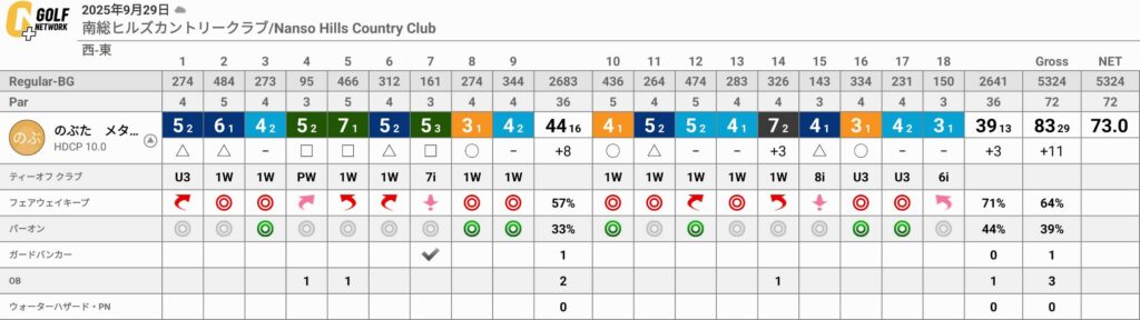 2025年9月29日南総ヒルズカントリークラブ83297/18