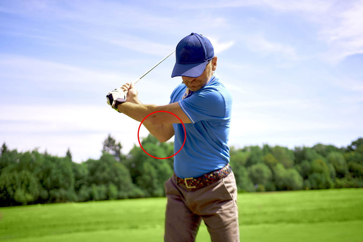 【ショット】右ひじを畳む意識のスイングを実践する